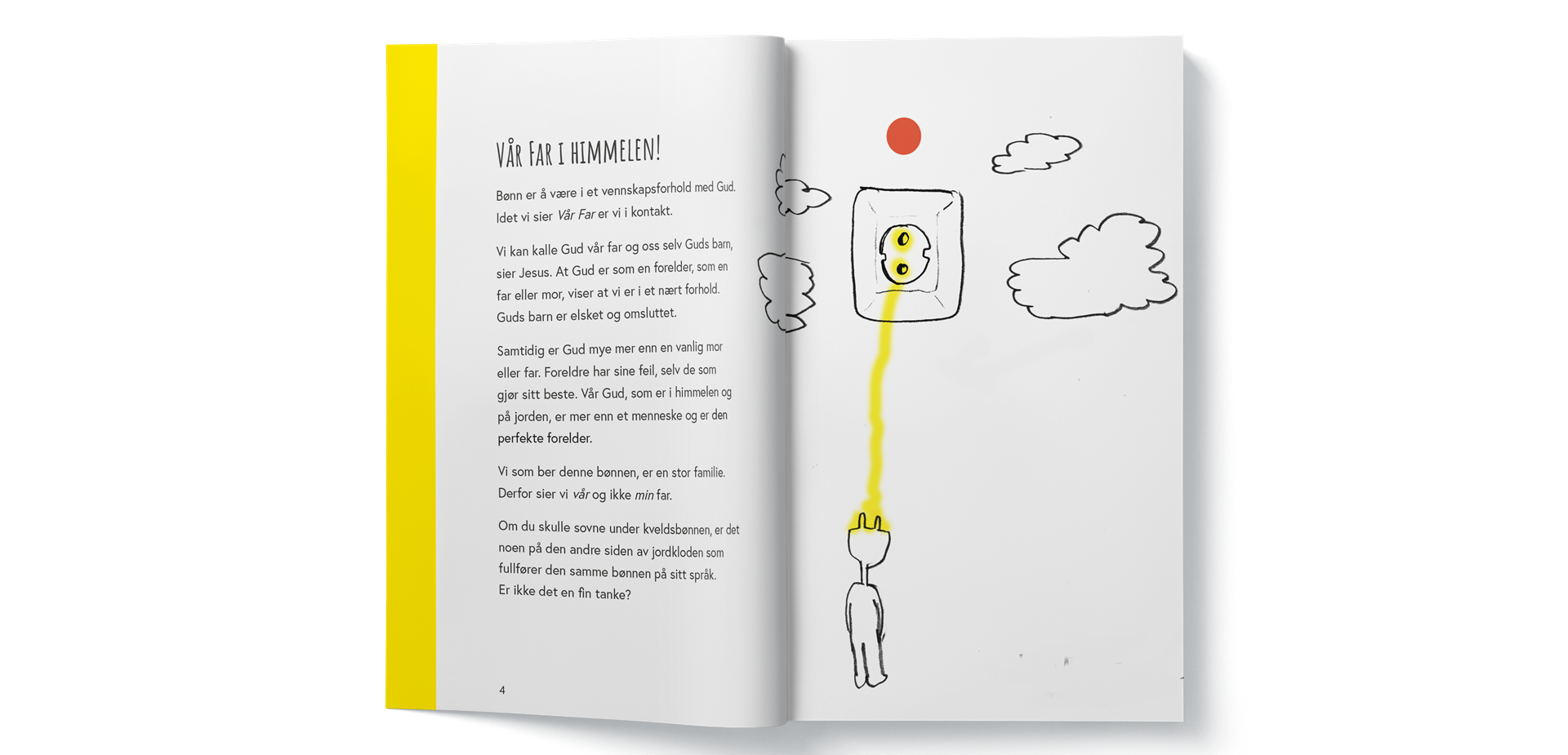 Bønn trenger ikke å ha ord, vi kan bare være stille, skrike, løpe eller be ved å gjøre noe fint. Det er også bønn. Men av og til er det godt å bruke ord når vi ber til Gud. I bønnen Vår Far får vi hjelp til å snakke med Gud og til å sette ord på troen og det kristne livet.