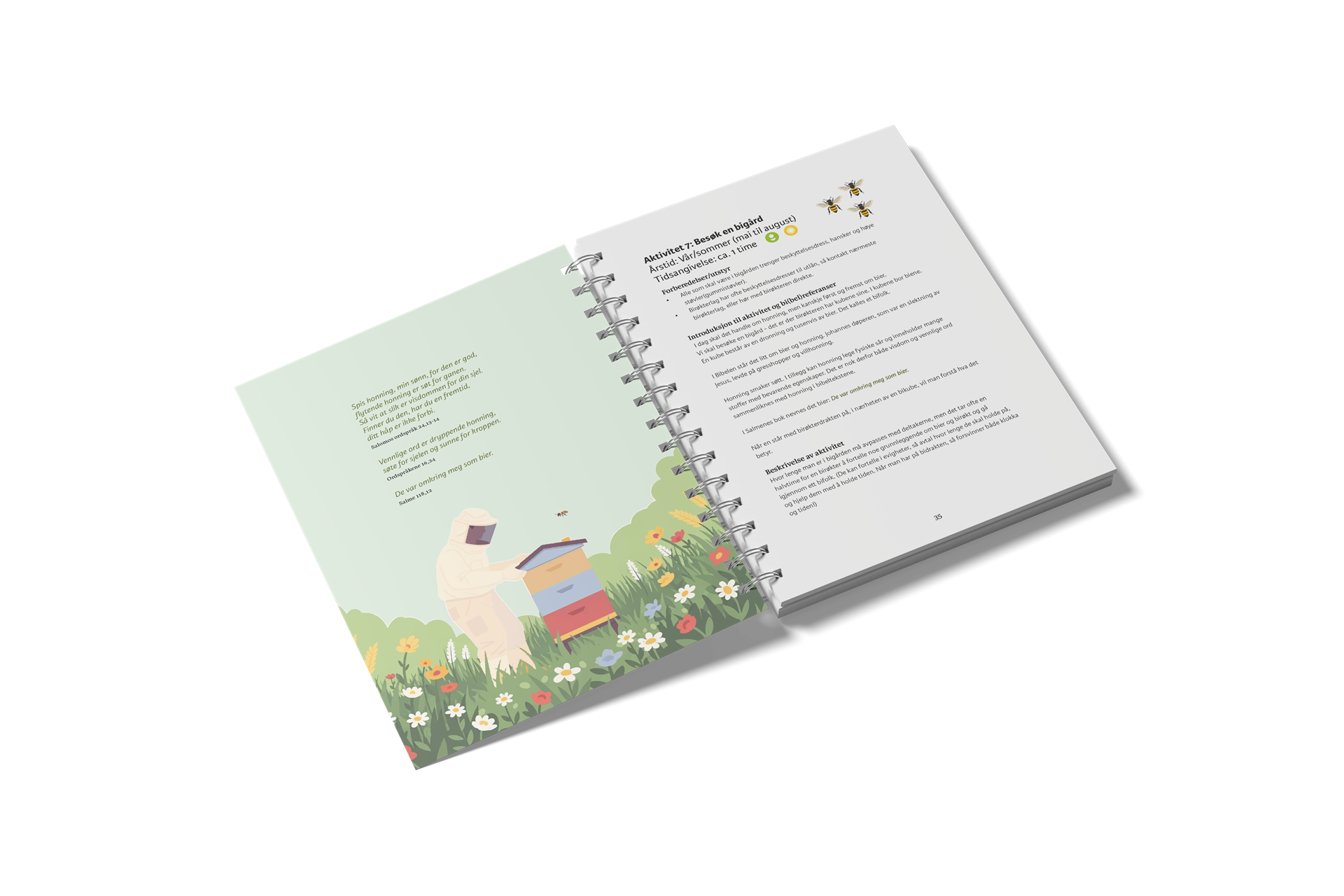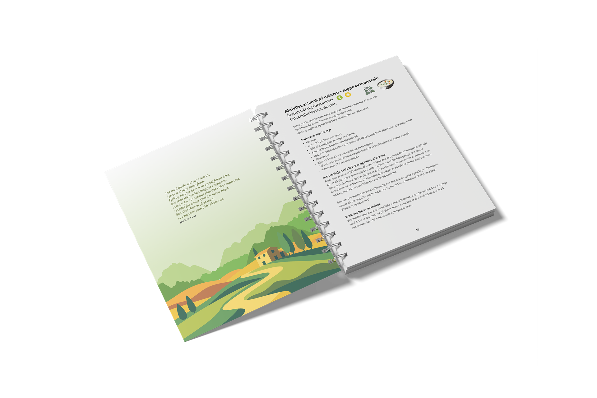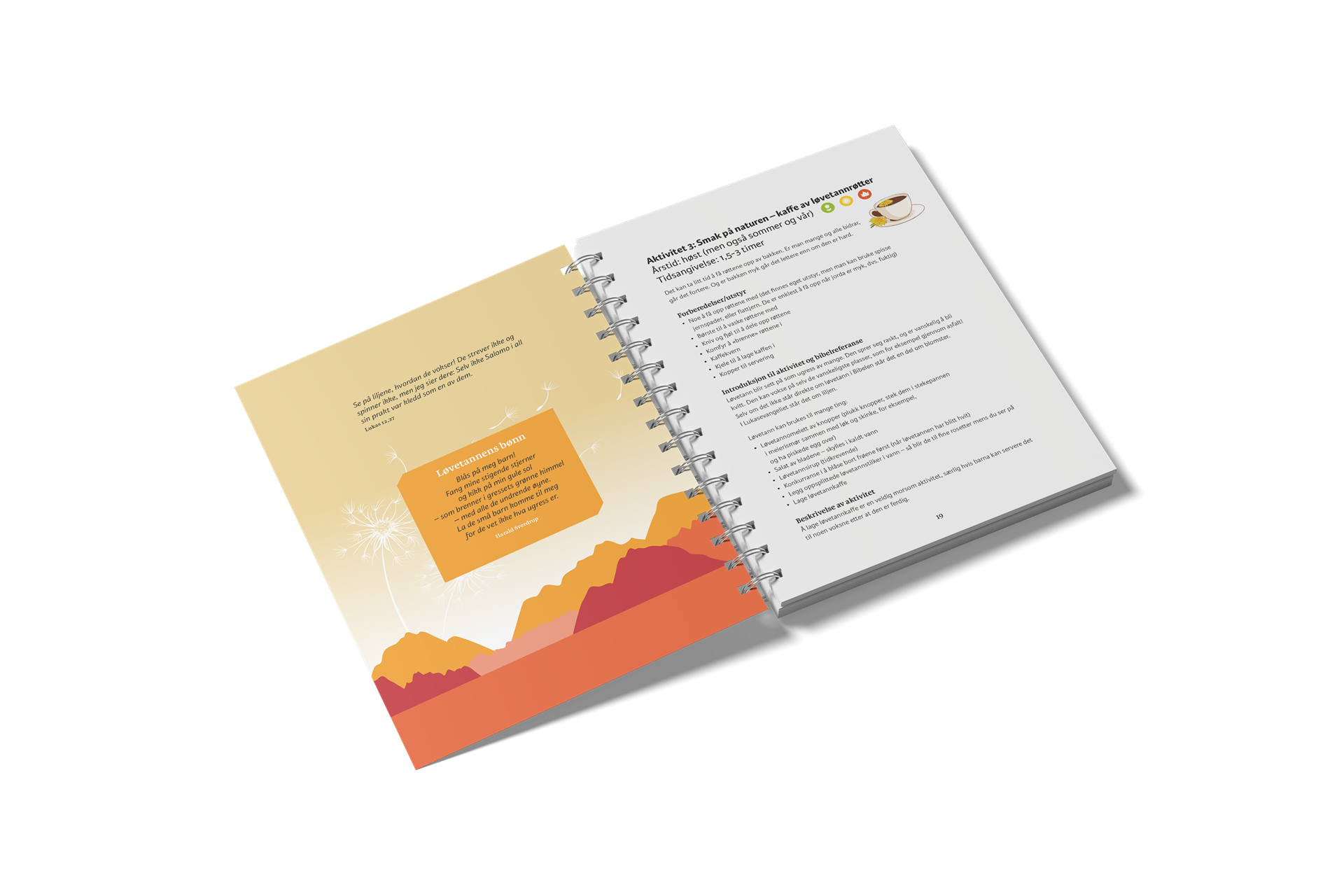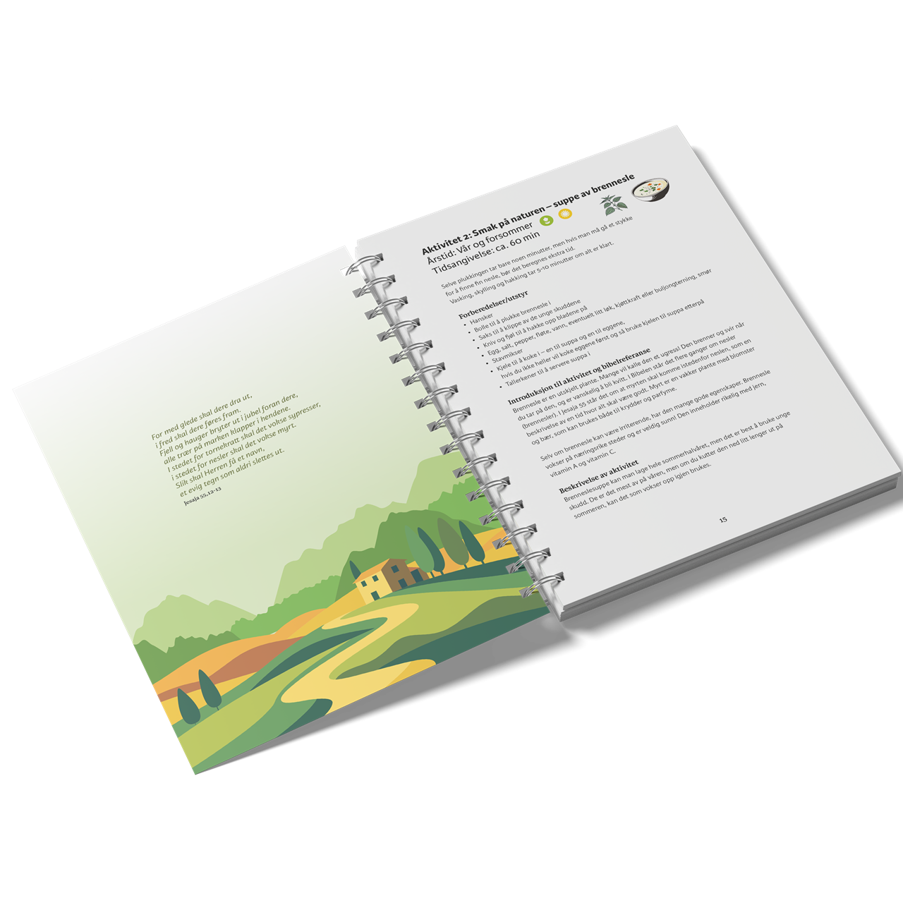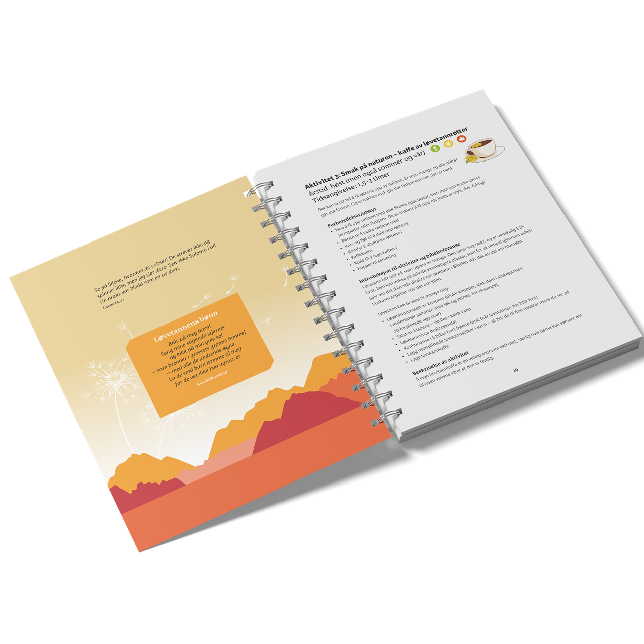 Planter og dyr vi har rundt oss har nyttige, morsomme og overraskende egenskaper. Gjennom å bli bedre kjent med noen av dem, lærer vi mer om Guds skaperverk. Lær å lage kaffe av løvetannrøtter og suppe av brennesle. Lær å finne dyrespor og lag og lukt på røkelse. Bli bedre kjent med livet i fjæra og i skogen. Finn ut noe nytt om husdyr og om stjernehimmelen. Og lær noen bibelsteder du kanskje ikke kjente fra før.