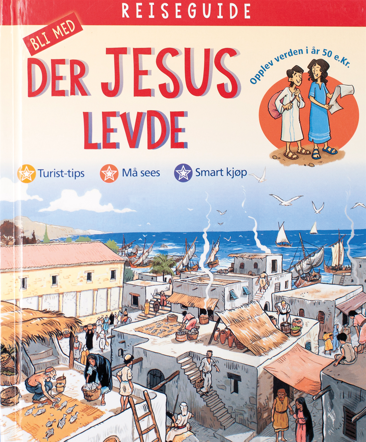 En innholdsrik guidebok for barn med blanding av tekst, bilder, kart og morsomme illustrasjoner. Vi blir tatt med tilbake til år 50 e.Kr. og her får vi konkrete tips om hva vi bør se og gjøre når vi drar til landet der Jesus levde. Vi får faktaopplysninger om stedene vi besøker, og boka forteller også om hva Jesus gjorde på akkurat de stedene. Turen starter ved Genesaretsjøen og ender i Jerusalem.