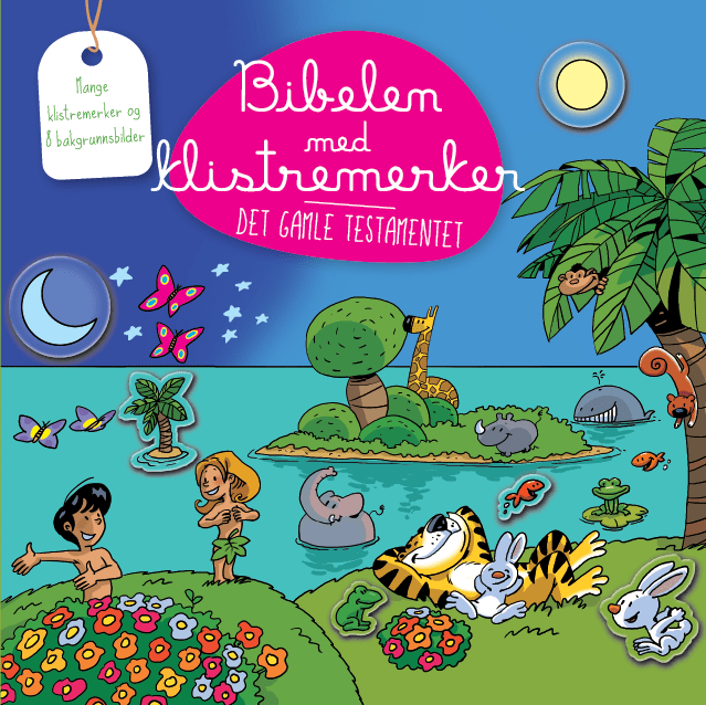 Barnebok med åtte fortellinger fra GT. Et stort, humoristisk fargebilde til hver. I midten av heftet er det et stort ark med klistremerker. I fortellingsteksten er det uthevet hvilke bilder som skal limes på det store fargebildet.