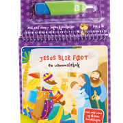 En morsom aktivitetsbok med fortellingen om Jesu fødsel. Inneholder fem flotte illustrasjoner, som males fram med en vannpenn. Barna kan la seg forundre over detaljene de maler fram, mens de tas med gjennom historien. Her er det bare å fylle pennen med vann, og begynne å male. Når sidene tørker, vil fargene forsvinne igjen. Sidene kan altså males om og om igjen. Penn følger med.