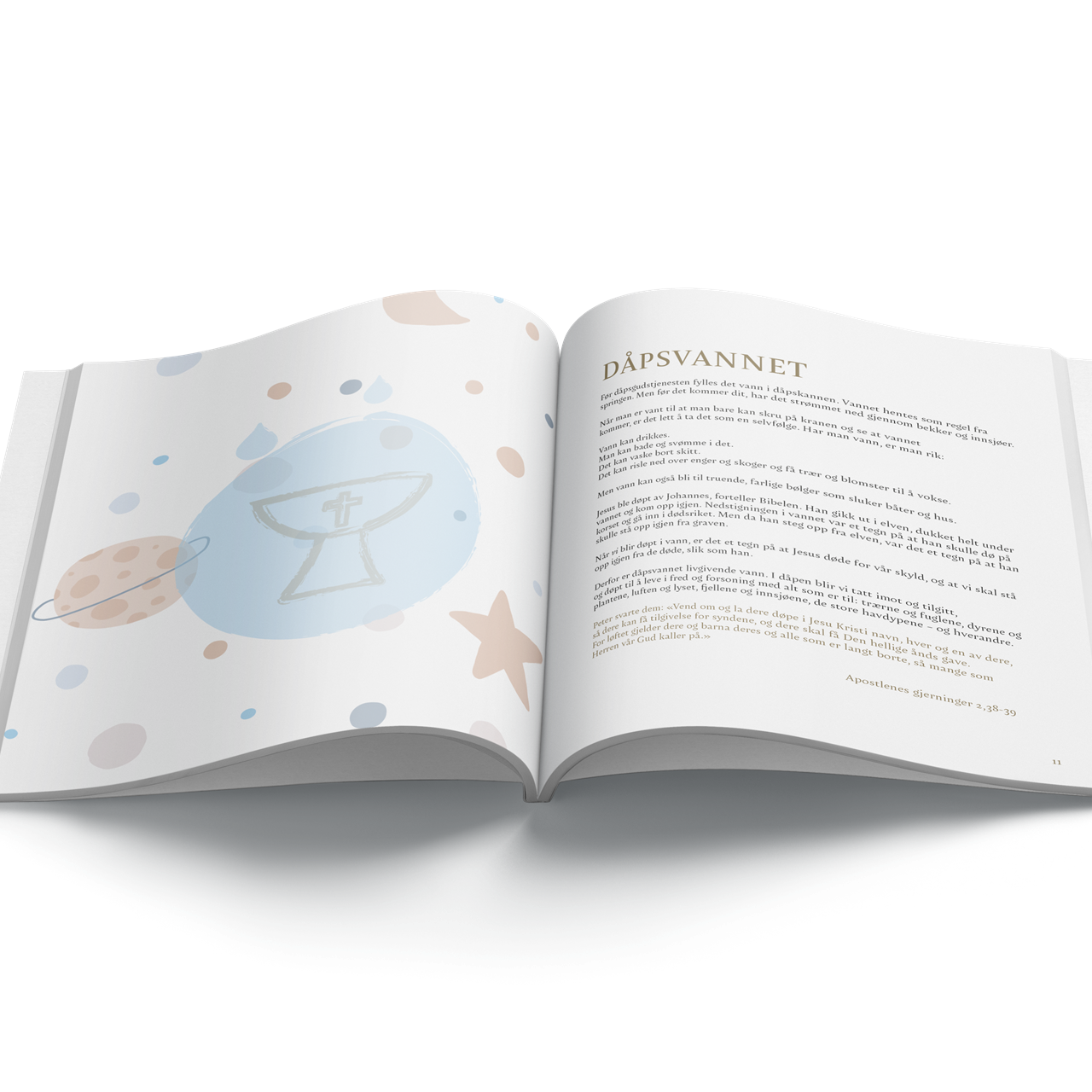 Boka gir enkle forklaringer, vakre salmer og bønner som kan gi dåpen, troen, festen og hverdagen en dypere mening.